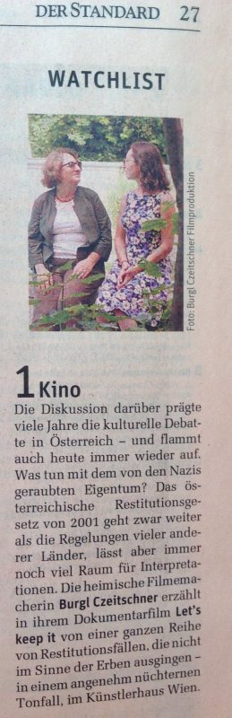 https://derstandard.at/2000085848163/Dokumentarfilm-Lets-Keep-It-erzaehlt-vom-Restitutionsdilemma